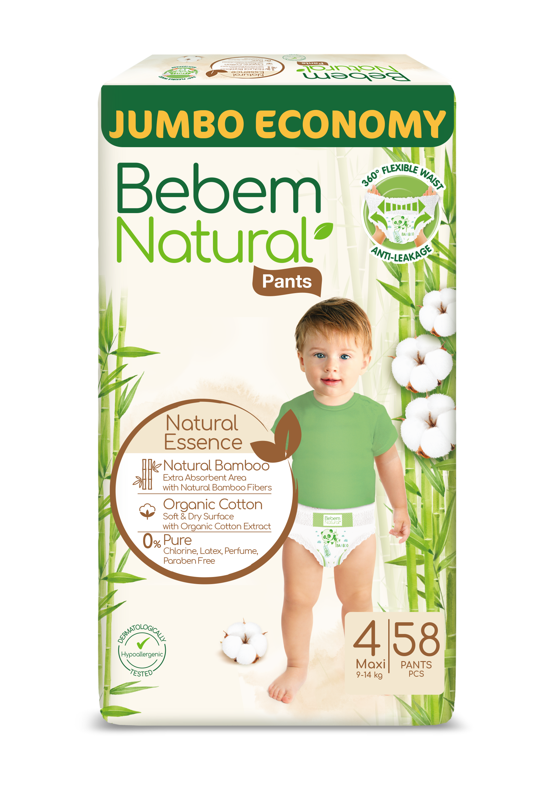 Bamboo and Organic Cotton, 0% Chlorine, Paraben, Latex, Perfume Bebem Natural Pants Size 4